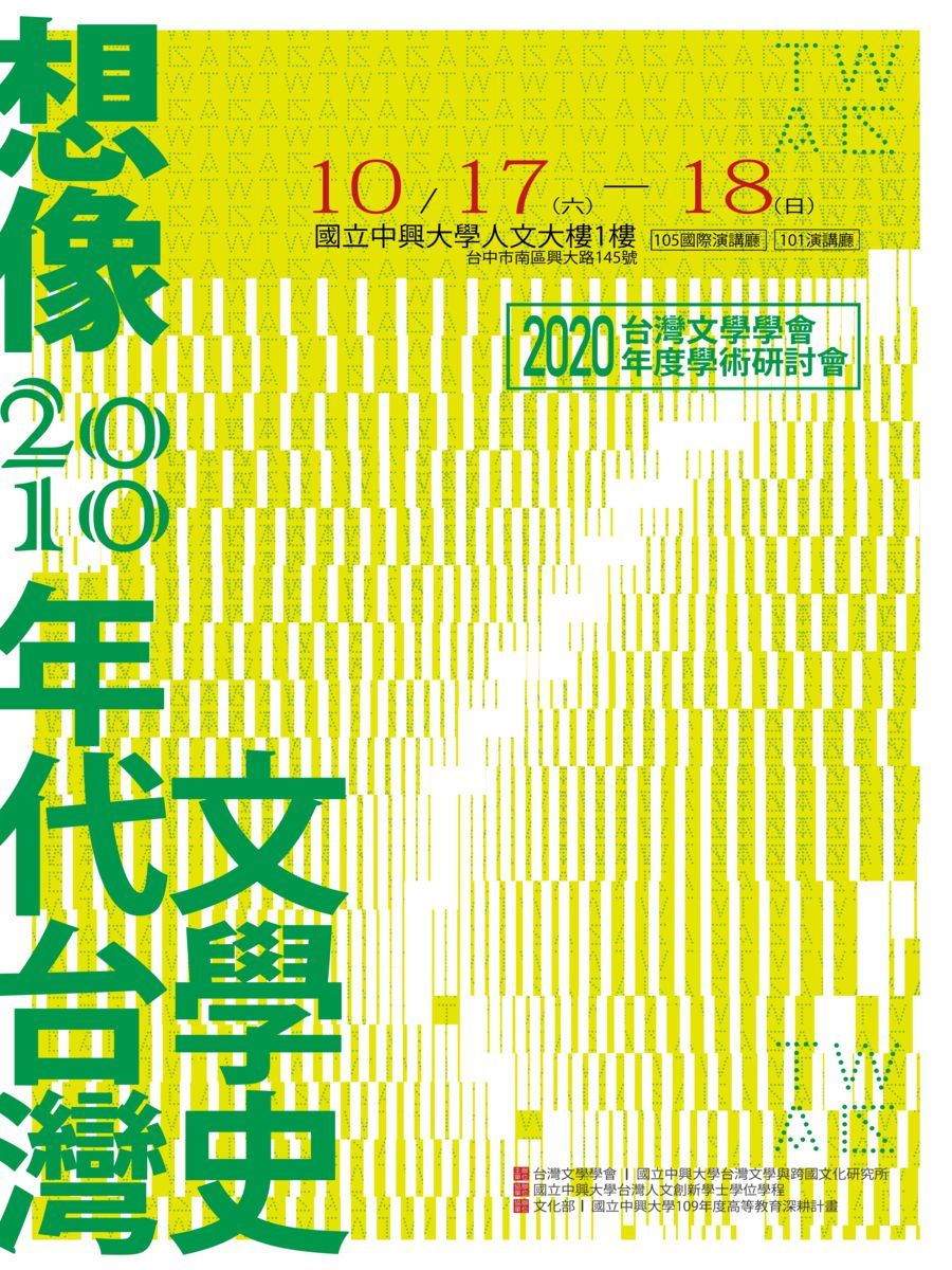 2020年台灣文學學會年會邀請台灣文學研究者共同來想像、回顧與重估2010年代的台灣文學,以十年作為斷代,一同來書寫2010年代的台灣文學史。