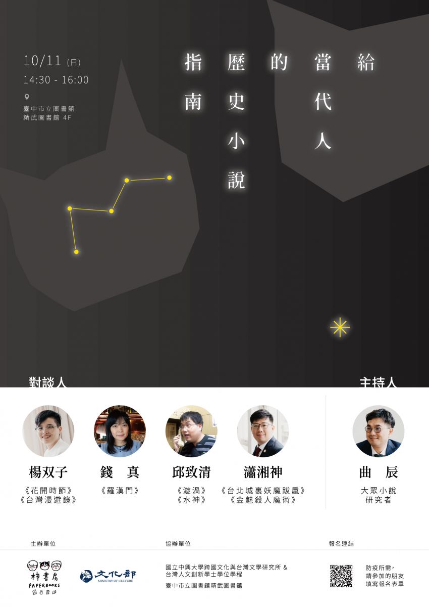 協辦單位:國立中興大學跨國文化與台灣文學研究所&台灣人文創新學士學位學程、臺中市立圖書館精武圖書館