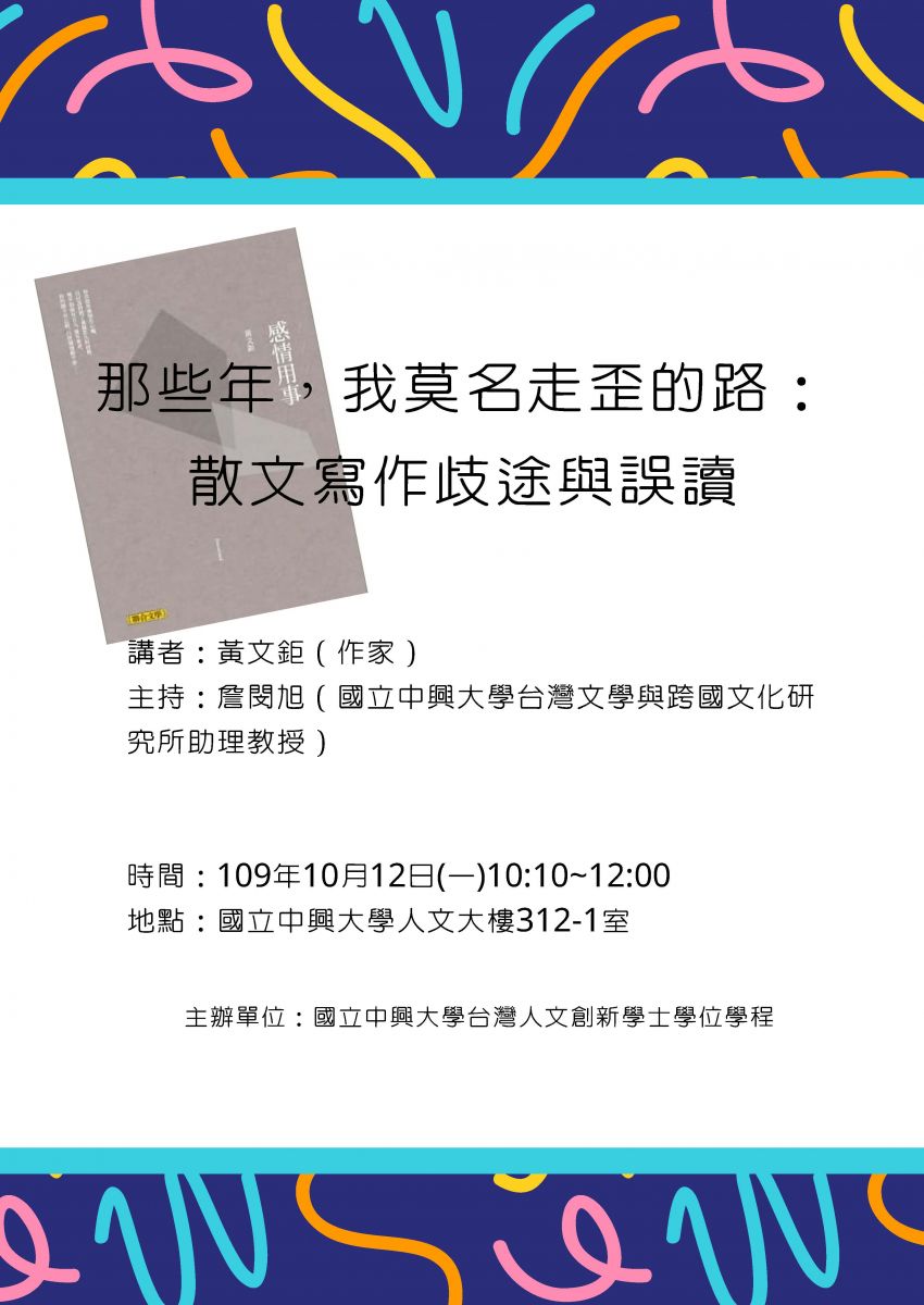演講名稱:那些年,我莫名走歪的路: 散文寫作歧途與誤讀